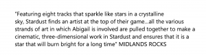 Raising money for Royal Marsden Cancer Charity with Stardust charity albumInterview in July 2025 issueThe Spill Magazine Review